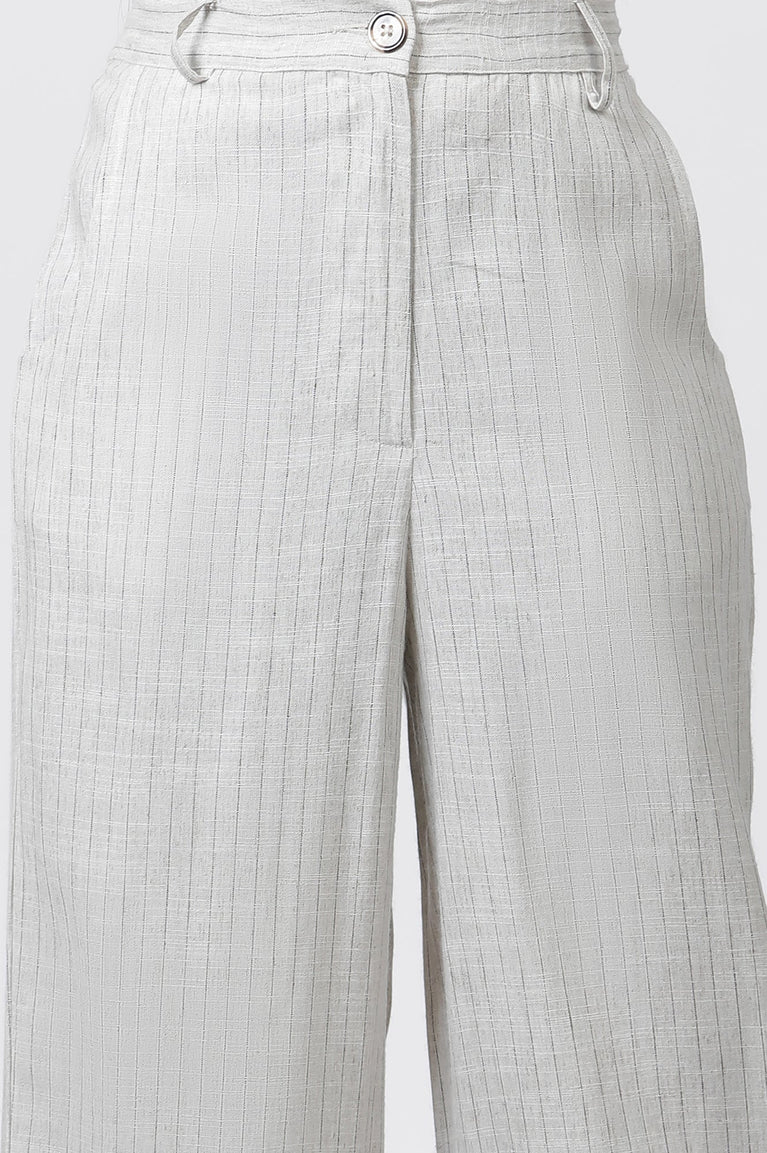 Beige Checkered Dobby Top & Jacket Set. This Sleeveless Top Is Paired With Straight Pants Crafted In Cotton Flax And With Striped Jacket To Complete The Look.