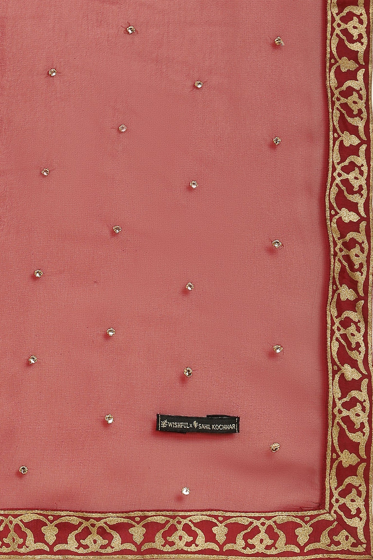 Maroon Mircro Velvet Embellished Kurta, Pants And Dupatta Set