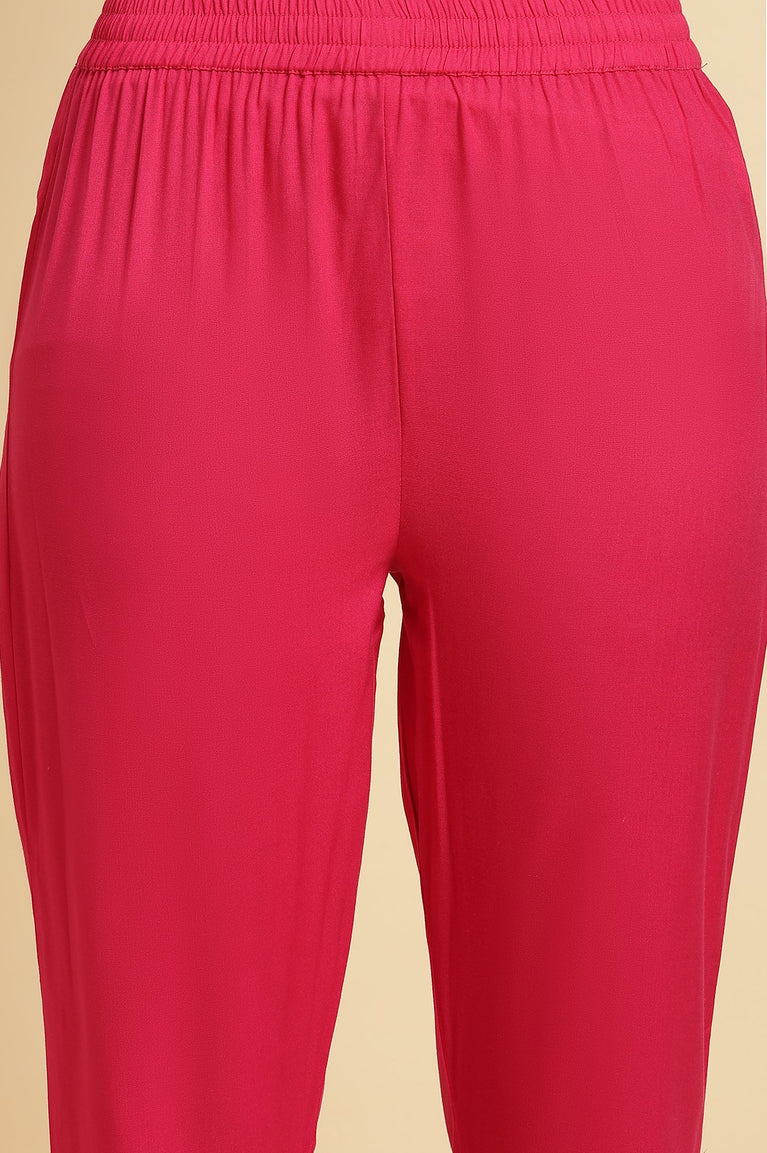 Get Ready For The Light Festivity Or Poooja At Home With This Pretty Kurta Set. The Set Has Multi-Coloured Printed Kurta In Mandarin Collar And Golden Button. It Ispaired With Pink Solid Slim Pants.