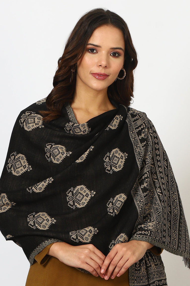 Black Yarn Dyed Cotton Blend Shawls & Stole