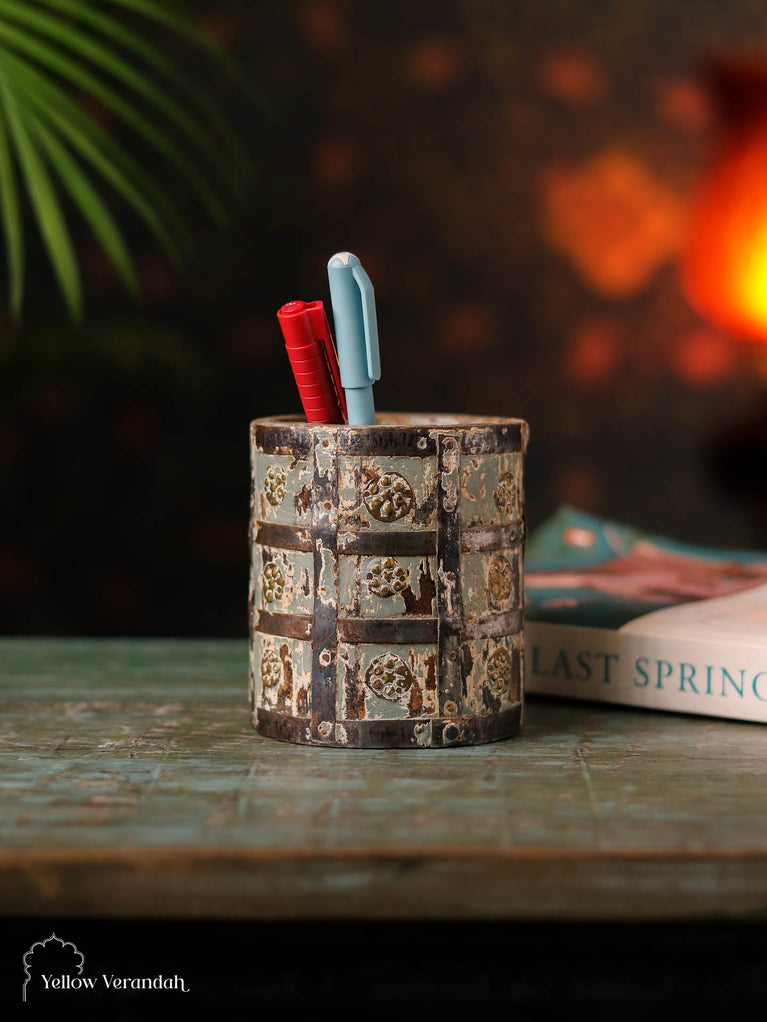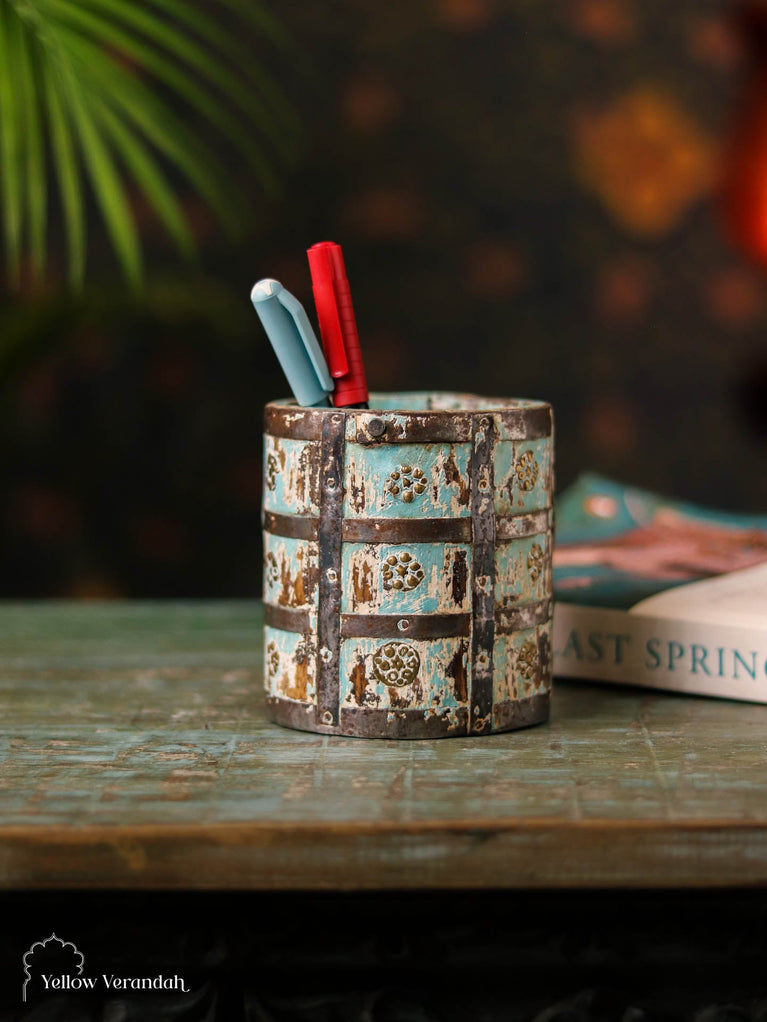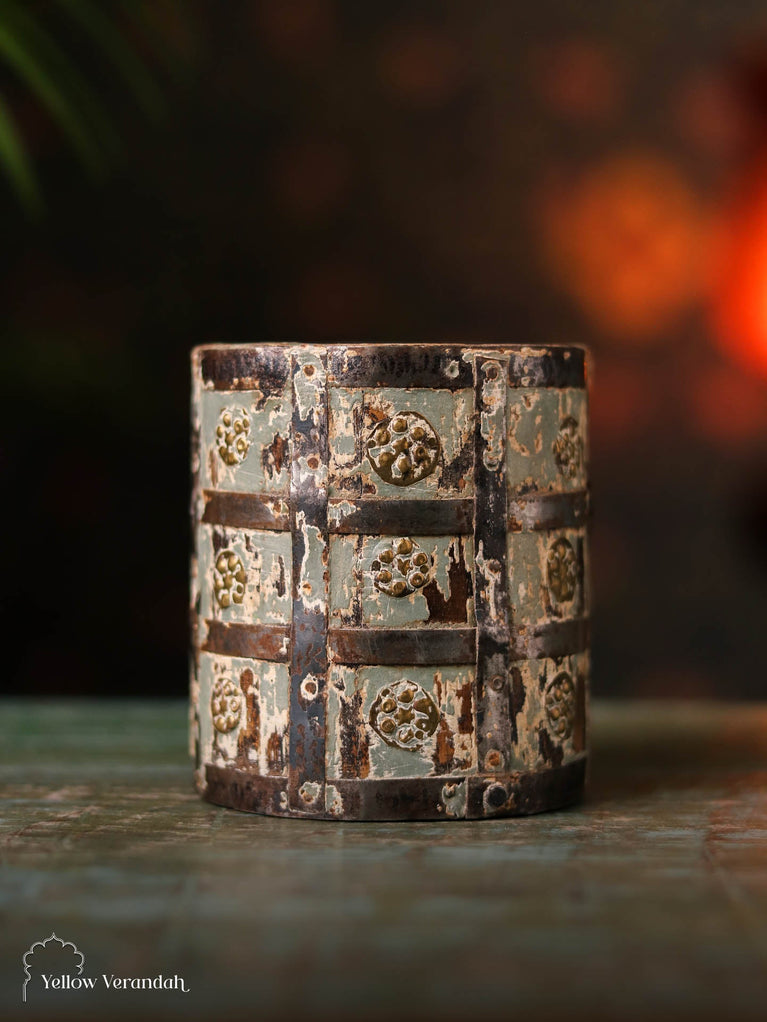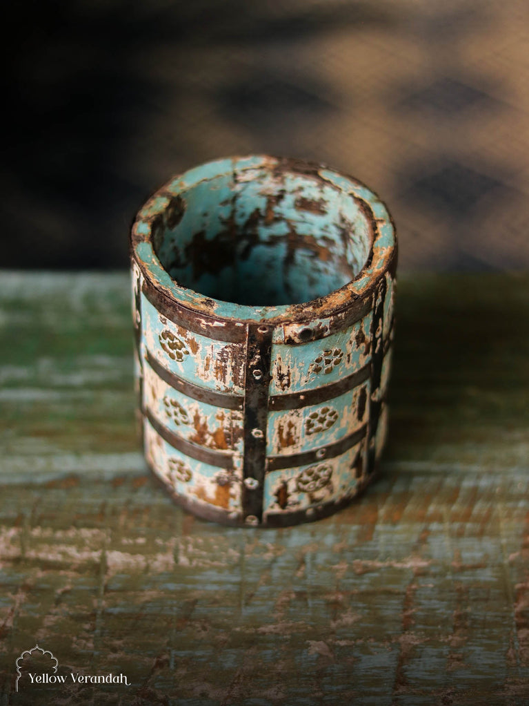 This original Antique Wooden Vase Pot is rare collection from old days. Once used as grain pot in Indian, especially Nepali households, this beautiful piece can be used as table accents or flower vase in your bespoke abode.