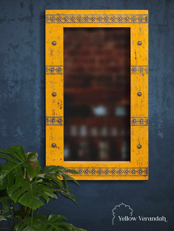 Bikaneri Distressed Mirror - Yellow