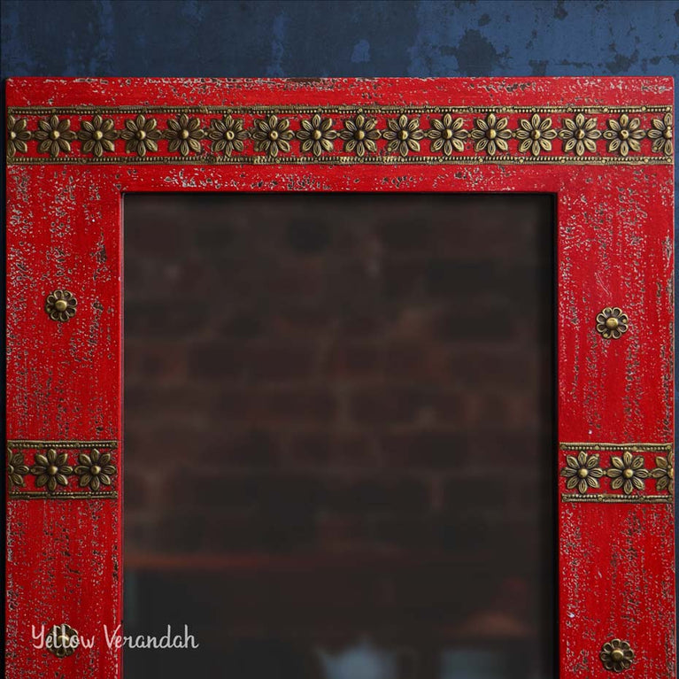 Bikaneri Distressed Mirror - Red