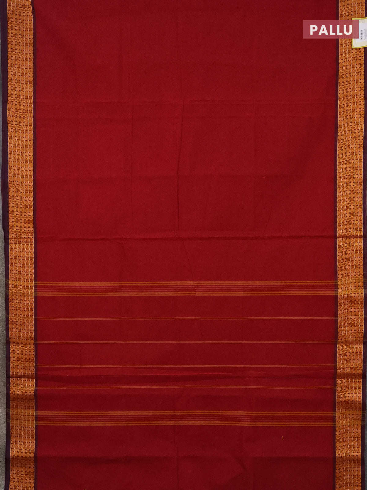 10 Yards chettinad cotton saree maroon and wine shade with plain body and thread woven border