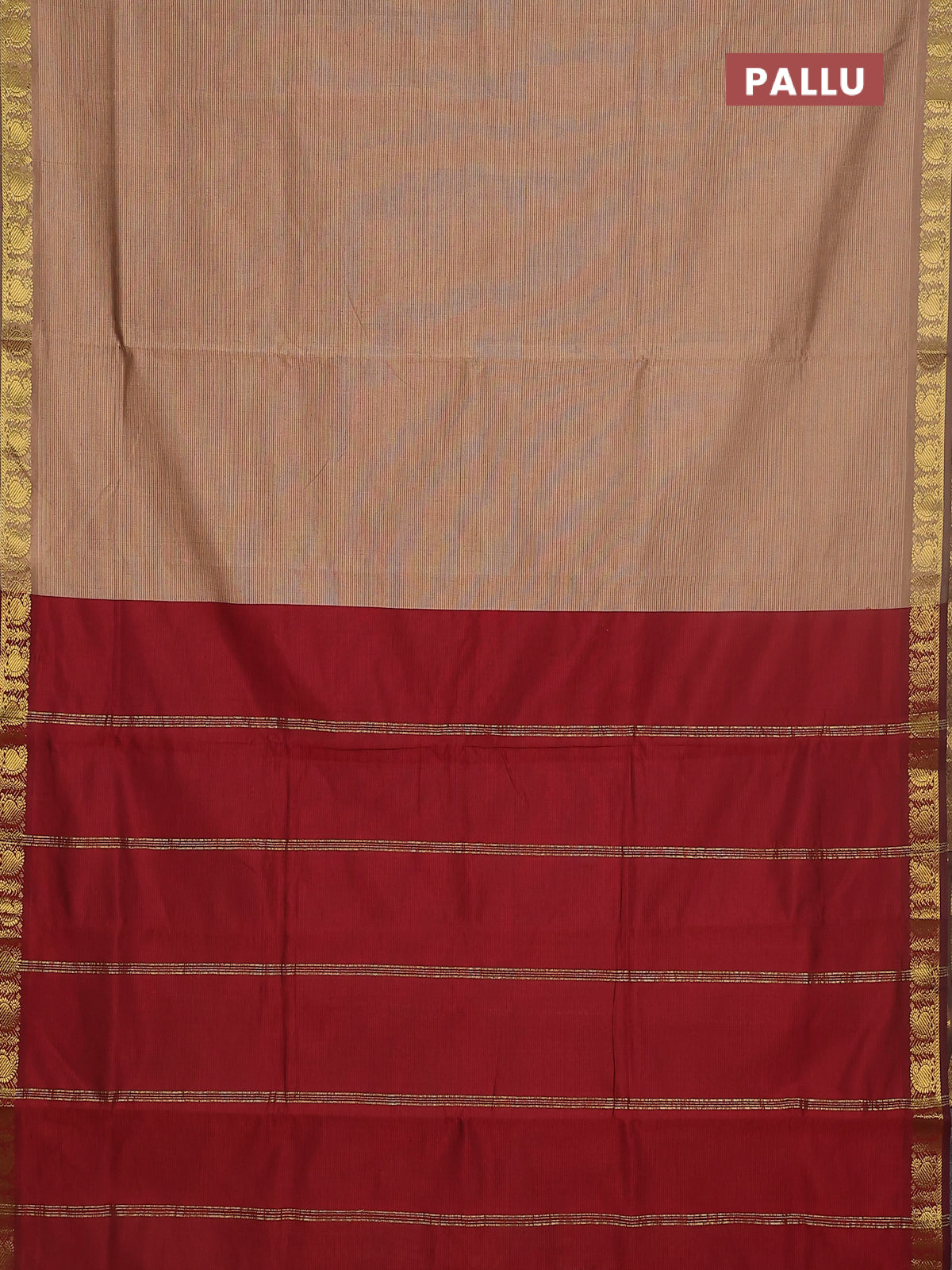 10 yards Poly cotton saree beige and maroon with plain body and zari woven border