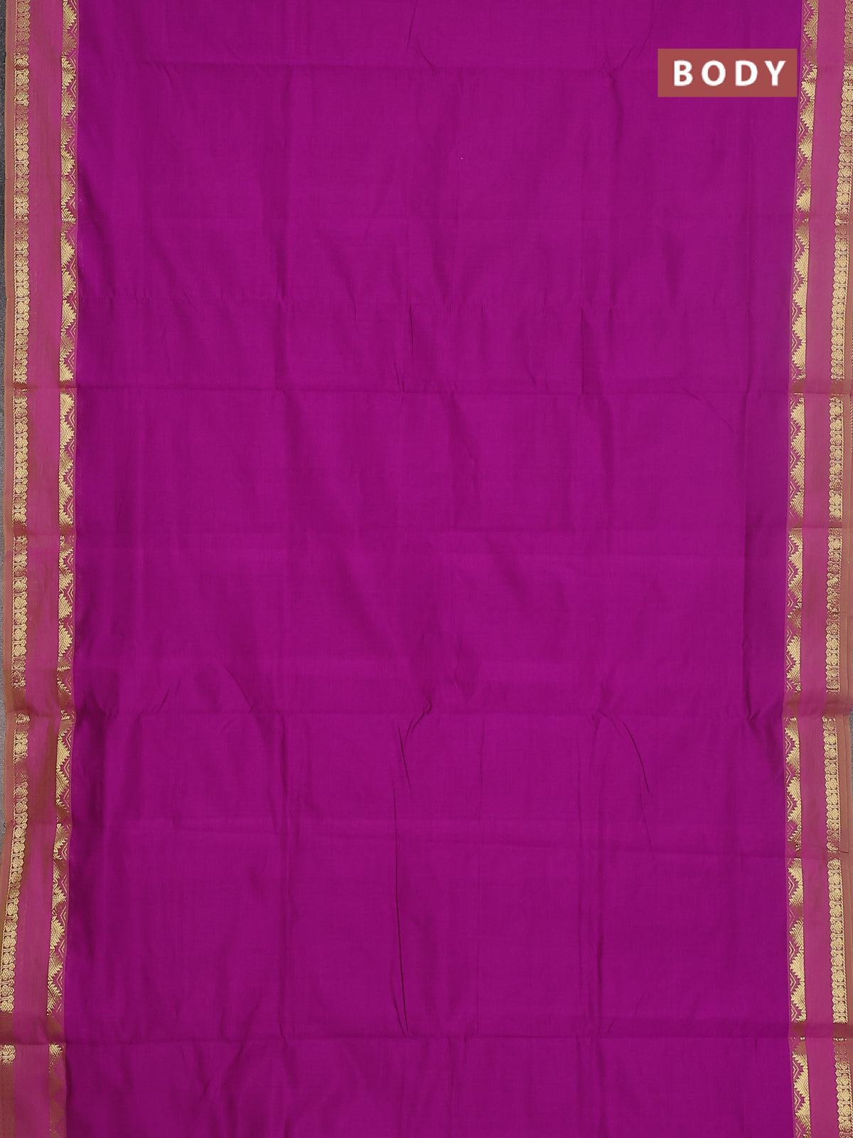 10 yards Poly cotton saree purple and light green with plain body and rettapet zari woven border