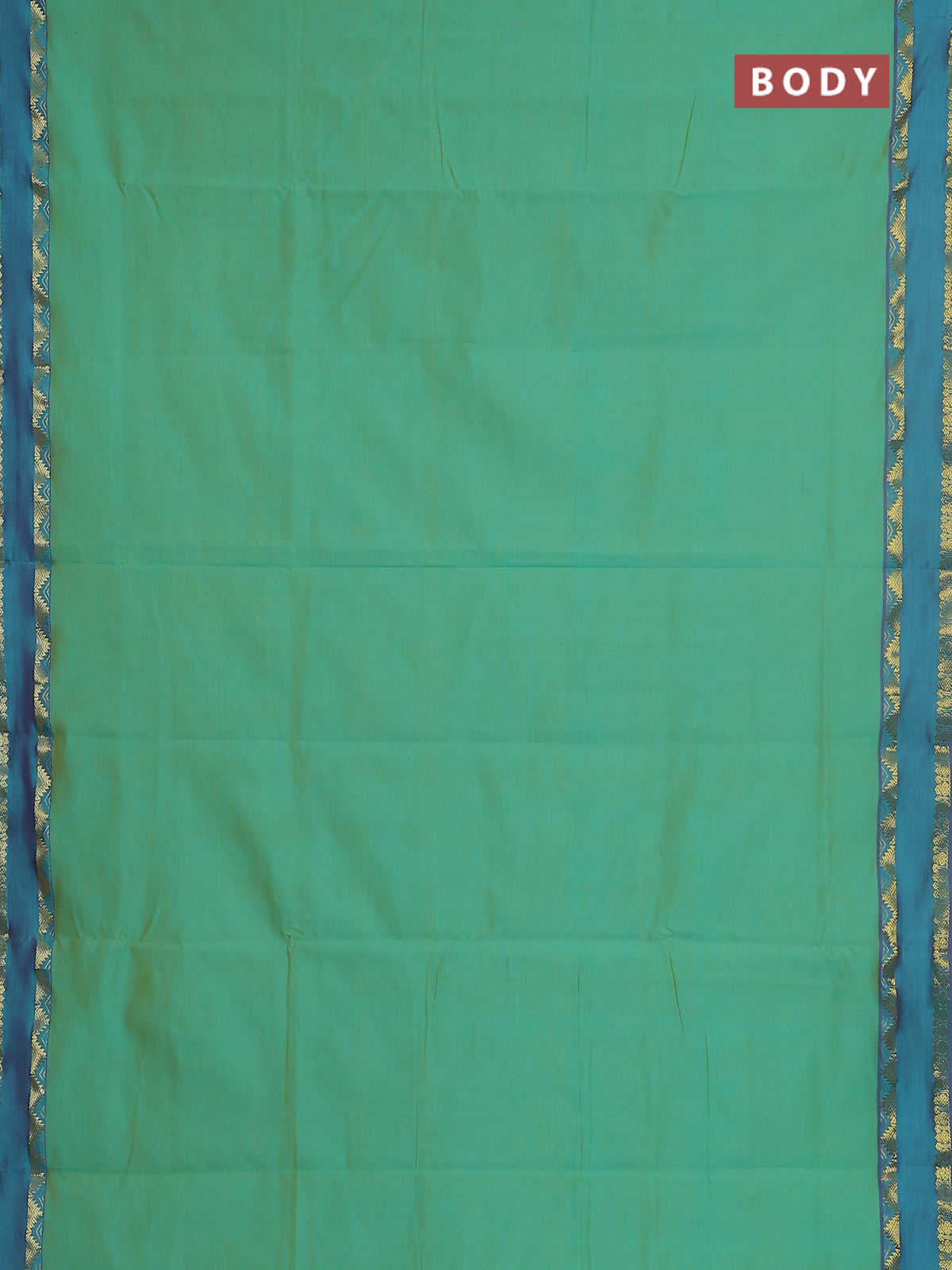 10 yards Poly cotton saree teal green and purple with plain body and rettapet zari woven border