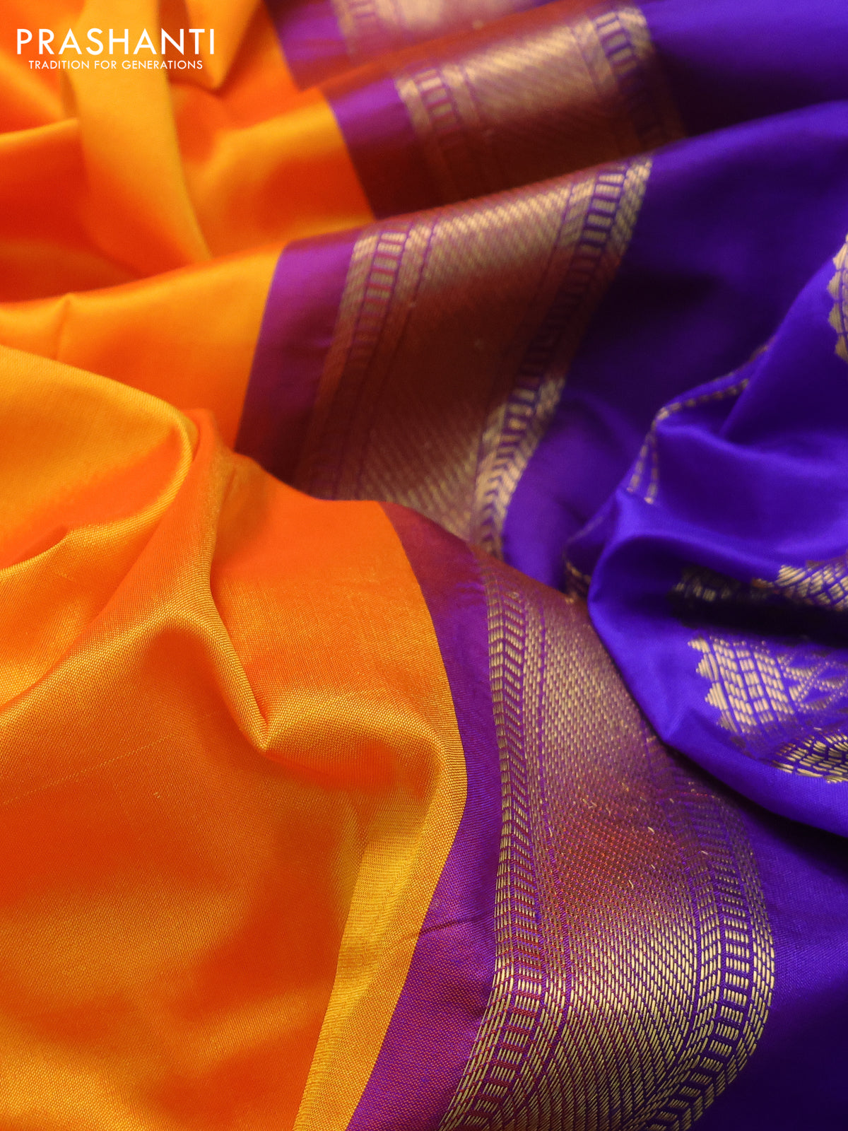 10 Yards silk saree mango yellow and blue with plain body and zari woven border