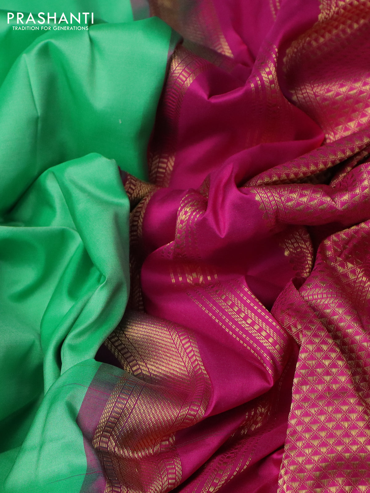 10 Yards silk saree teal green and pink with plain body and zari woven border