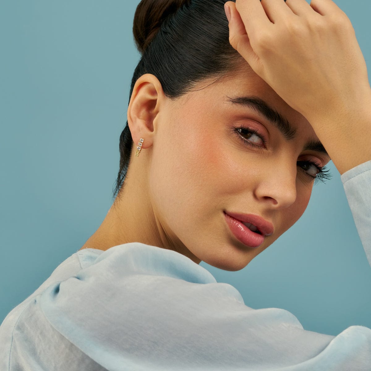 Enhance your everyday look with these stunning 92.5 silver earrings from Kushal's Fashion Jewellery. Adorned with sparkling white zircon stones, these earrings are available in gold, rhodium, or rose gold polish to choose from. Crafted from 92.5 silver, these elegant earrings feature a secure latch-back closure.