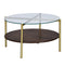 Adira Glass Top Metal Frame Center Table (Red Walnut)