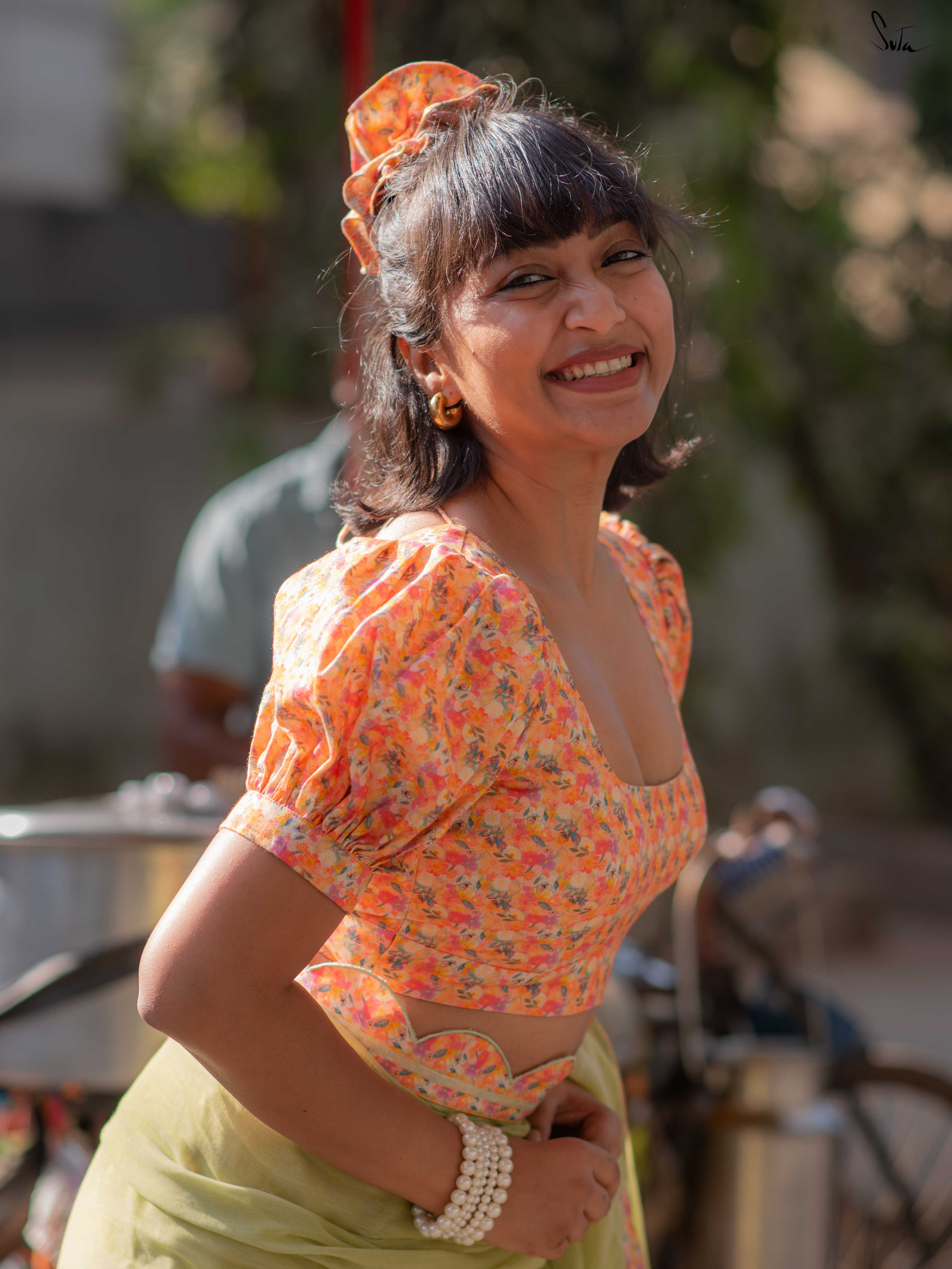 Saree: The model is wearing size S blouse and the saree is Rohit Sonia.