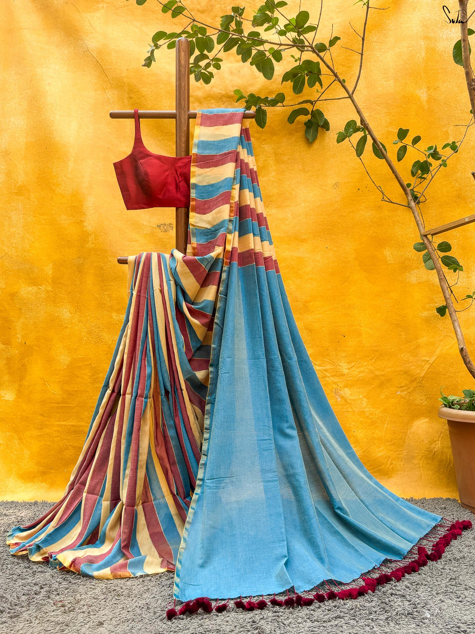 Cotton fabric dates back to some of the most ancient civilisations and it has a strong presence in the modern wardrobe as well. The softness and lightness of cotton combined with its strength and versatility makes it one of the most popular choices, especially for the Indian climate. We took this simple, elegant fabric and combined it with acrylic for that added sheen and voila! We love what we see and the saree falls so beautifully that it feels like second-skin!