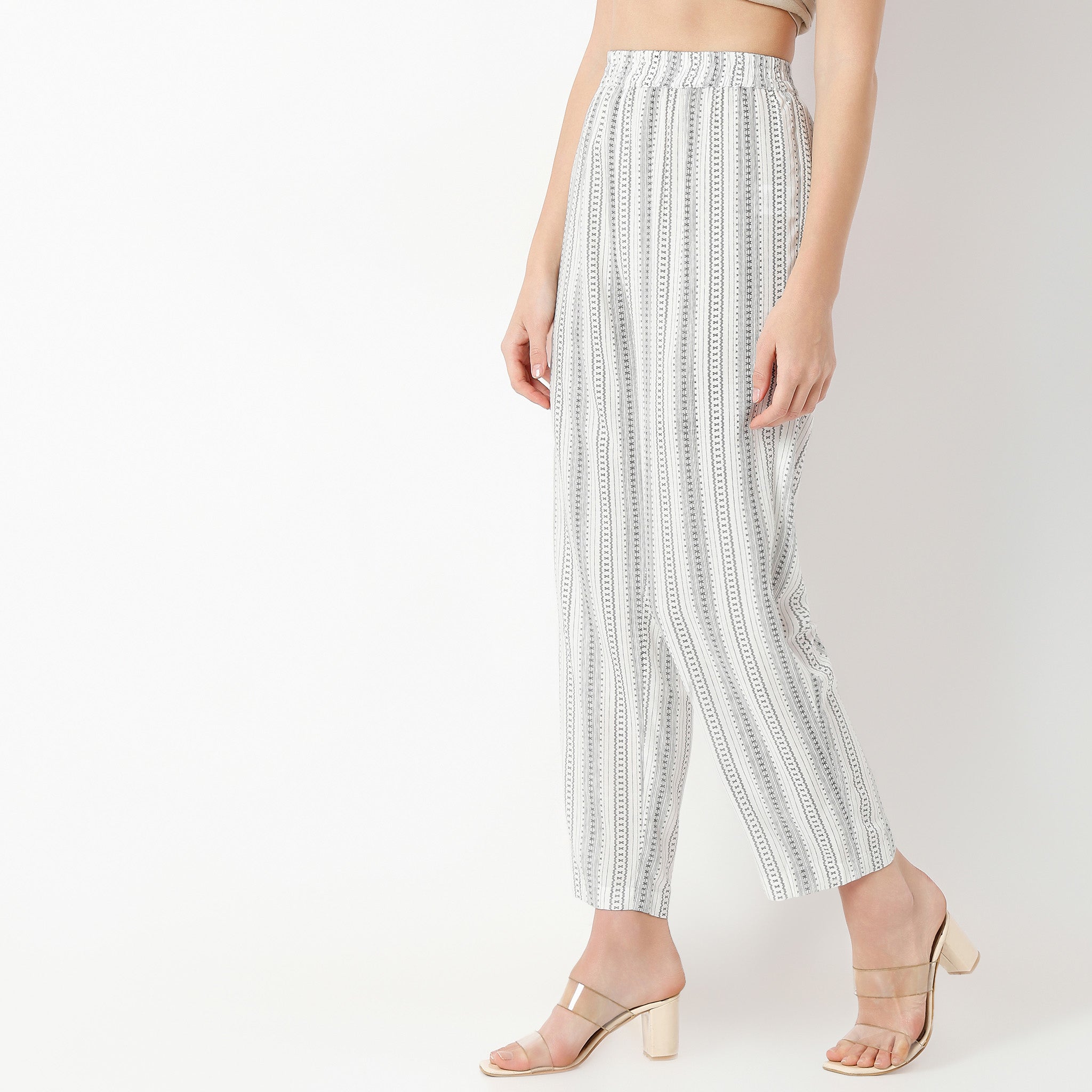 Experience the perfect blend of style and comfort with our Straight Fit Printed Ankle Length Mid Rise Pants. Crafted from 100% Rayon, these pants offer a soft, breathable feel that keeps you comfortable all day long. The woven fabric ensures durability and a polished look, making these pants a versatile addition to your wardrobe.
