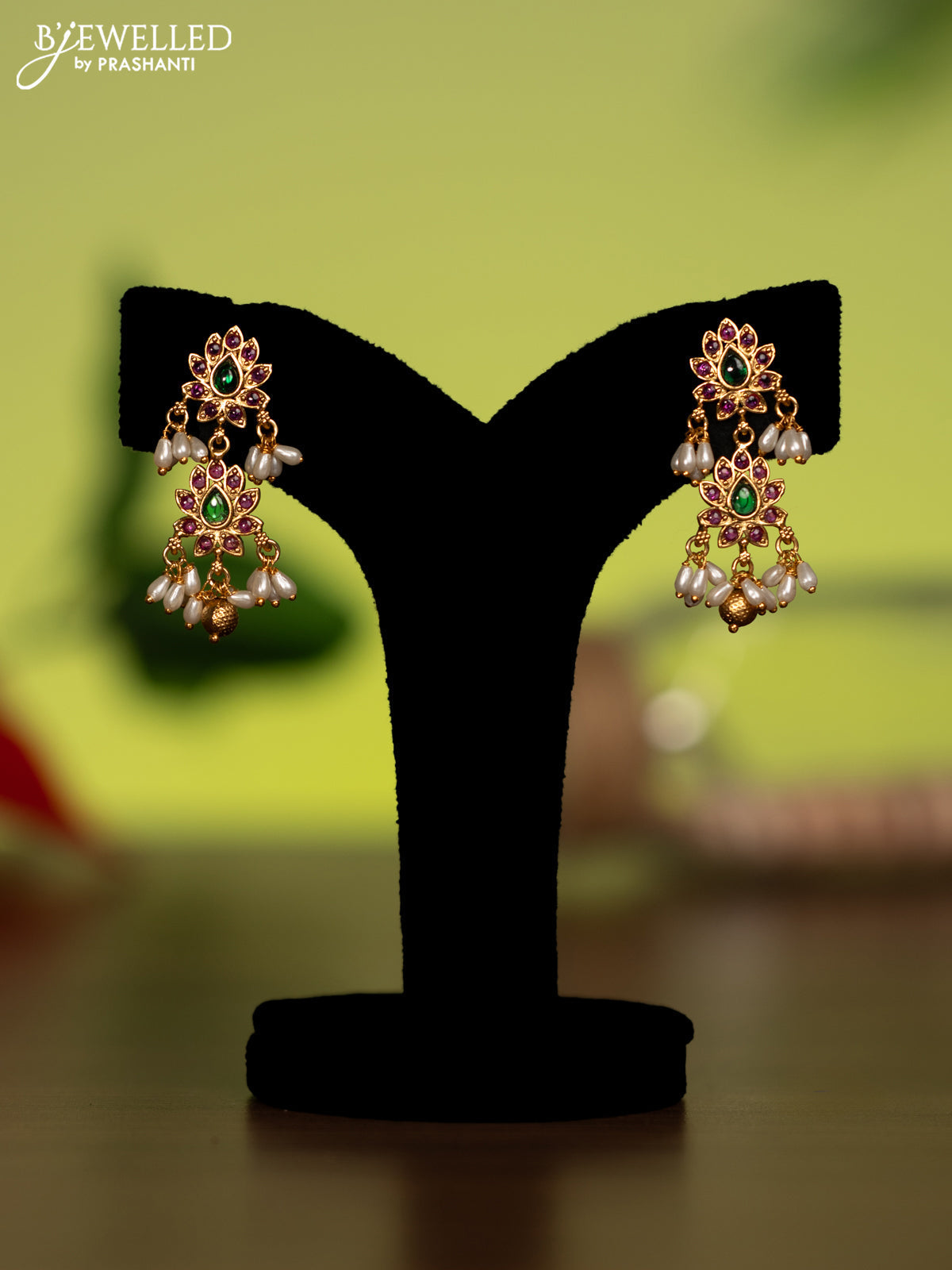 Antique attigai necklace with kemp stones and pearl & golden beads hanging