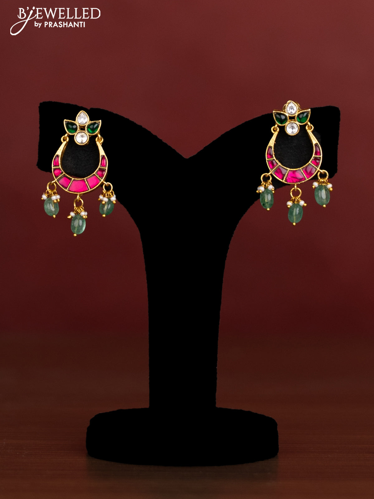 Antique beaded green necklace double peacock pendant with jadau kundan stones and pearl & beads hangings