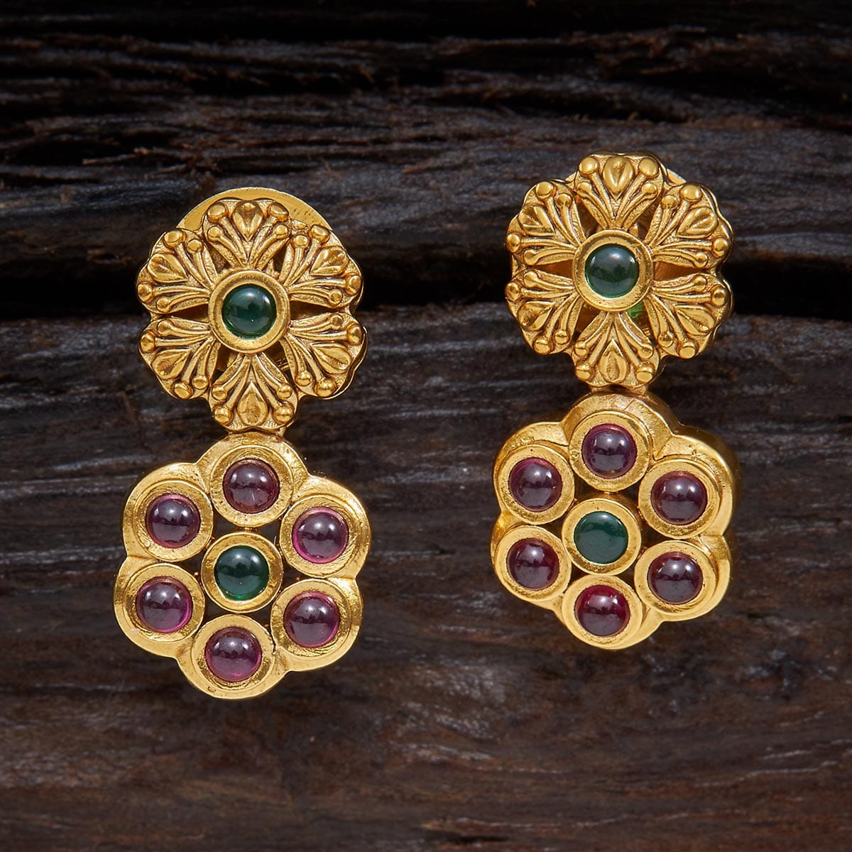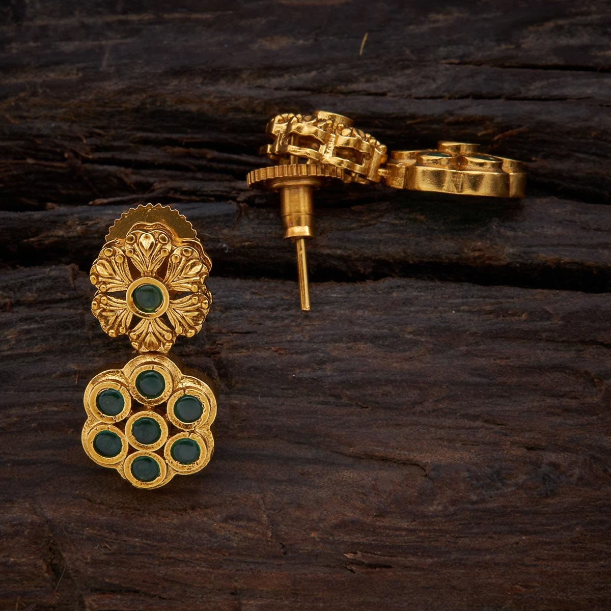 Flower Motif Antique EarringRock a chic vibe with these antique earrings, crafted from copper alloy with a golden polish. Studded with green or ruby stones in a trendy floral design, they're the ultimate statement-making jewellery. These perfect push-back earrings are ideal for any occasion, seamlessly blending with your fusion outfits for that Gen Z flair.