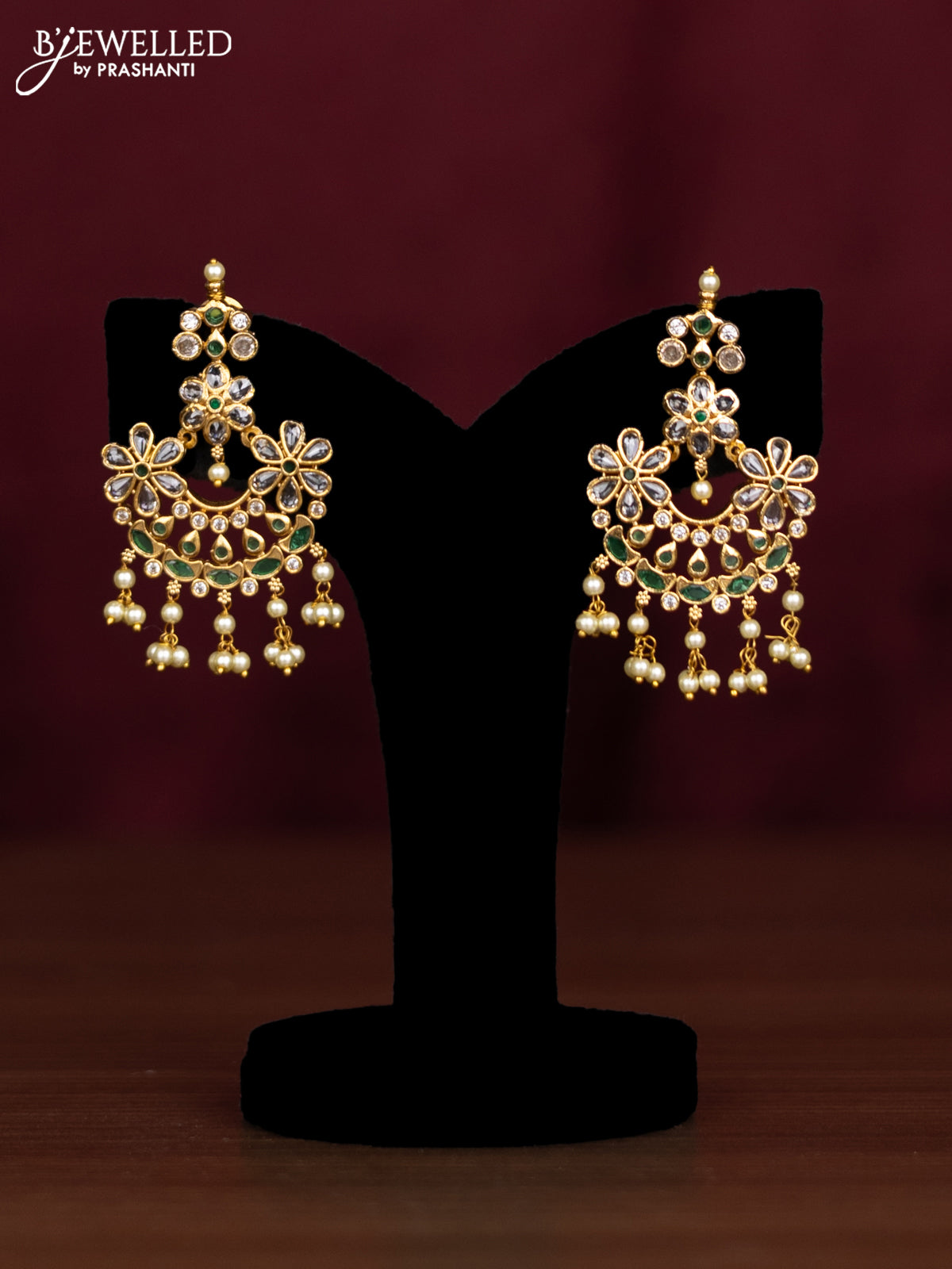 Antique guttapusalu haaram floral design with emerald & cz stones and pearl hangings