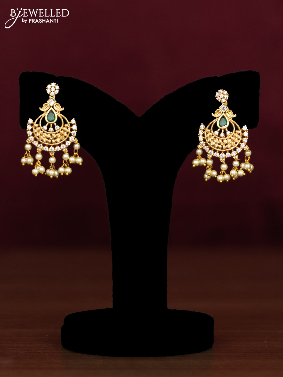 Antique guttapusalu necklace with emerald & cz stones and pearl hangings