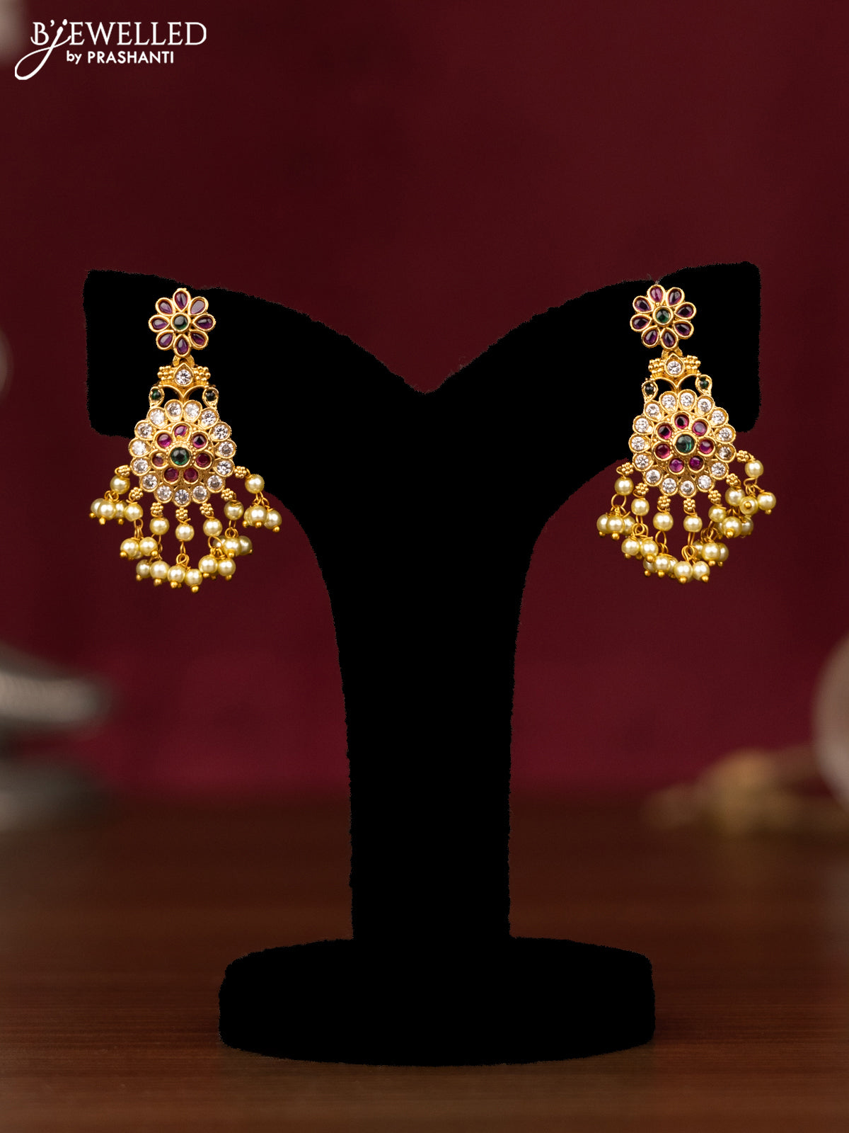 Antique guttapusalu necklace with kemp & cz stones and pearl hangings