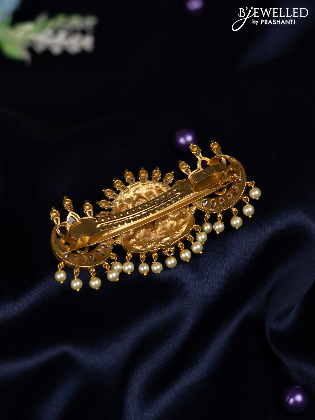 Antique hair clip medium size lakshmi & chandbali design with kemp & cz stones and pearl hangings