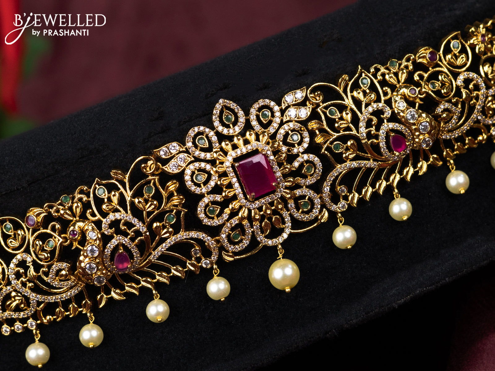 Antique hip belt peacock & floral design with kemp & cz stones and pearl hangings