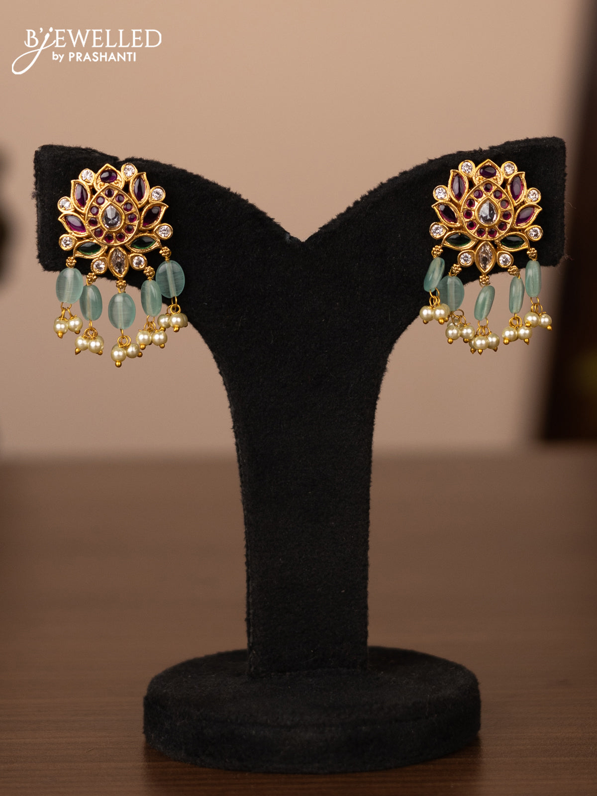 Antique necklace lotus design with kemp & kundan stones and pearl & beads hanging