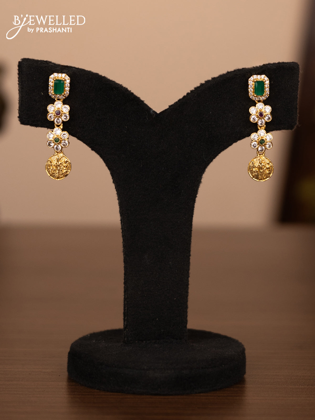 Antique necklace ramdarbar design with kemp & cz stones and pearl hangings