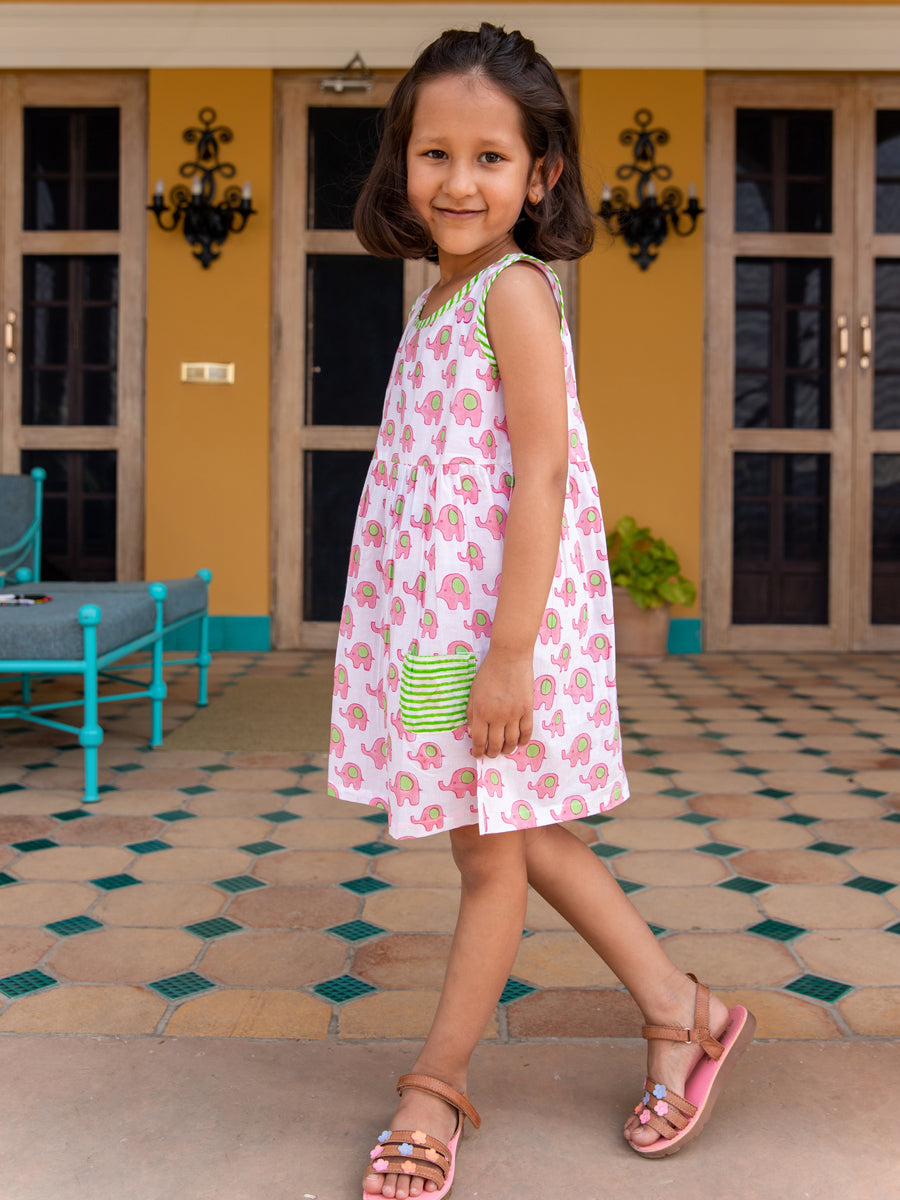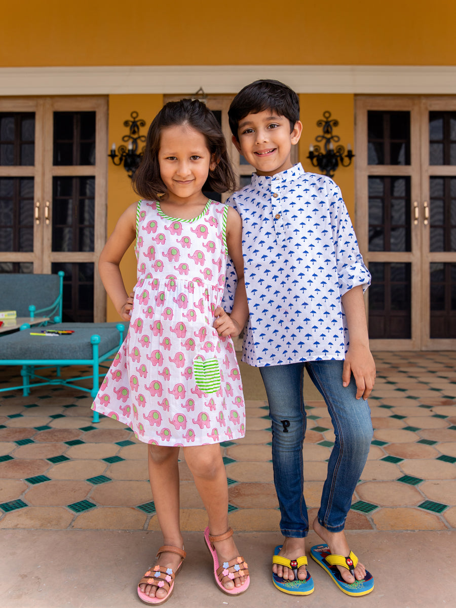 An all-time classic, a smart A-line dress accented with a cute pocket. Easy, breezy, and happy! Crafted in 100% GOTS certified organic cotton, these hand block print dresses make for a chic addition in your child's wardrobe. The dress has a button hole at the back for easy wearing.