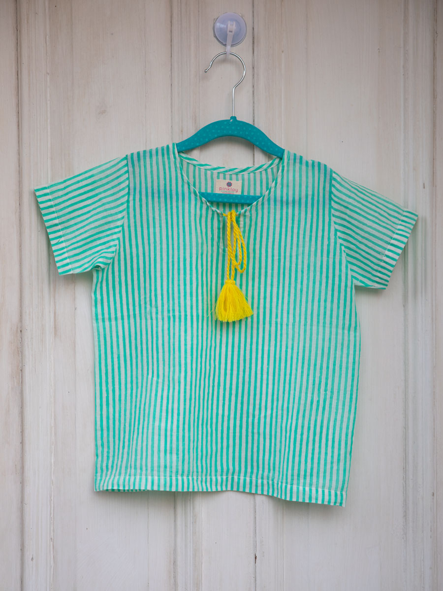 Aqua Stripes Organic Cotton Block Printed Top