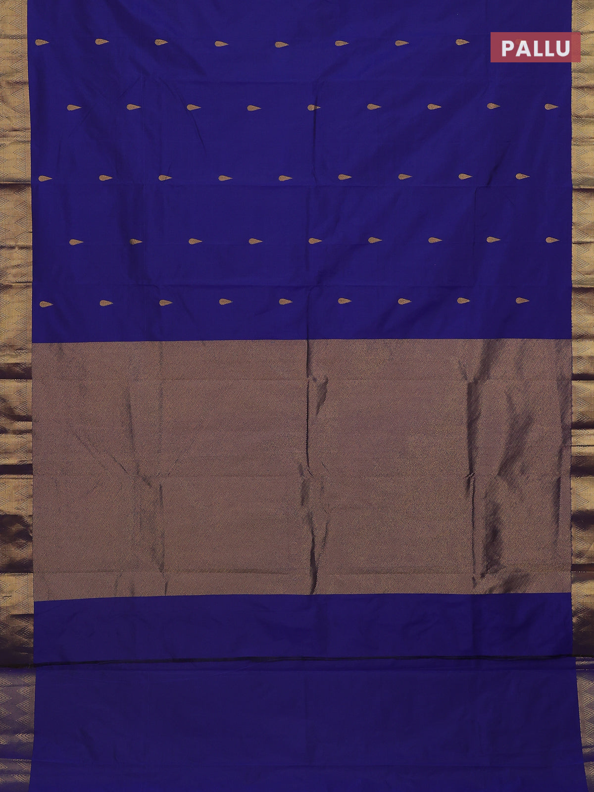 Arani semi silk saree blue with zari woven thilak buttas and zari woven border