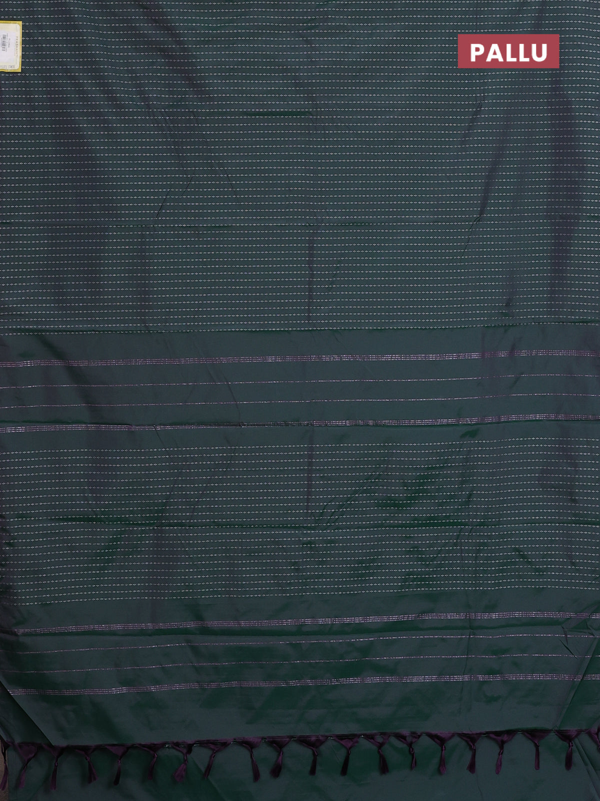Arani semi silk saree dual shade of green with allover silver zari weaves in borderless style