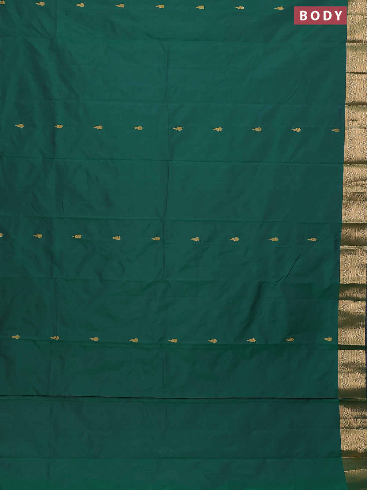 Arani semi silk saree dual shade of green with zari woven thilak buttas and zari woven border