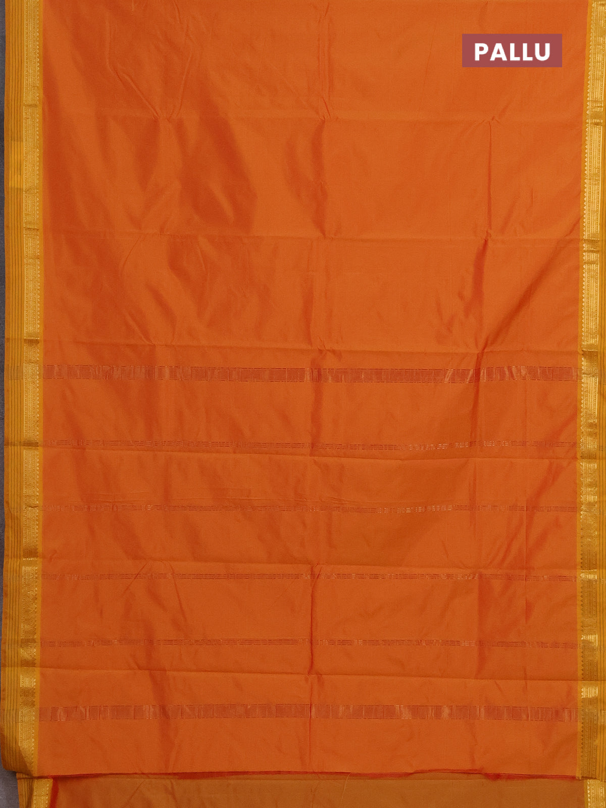 Arani semi silk saree dual shade of mango yellow with plain body and zari woven simple border