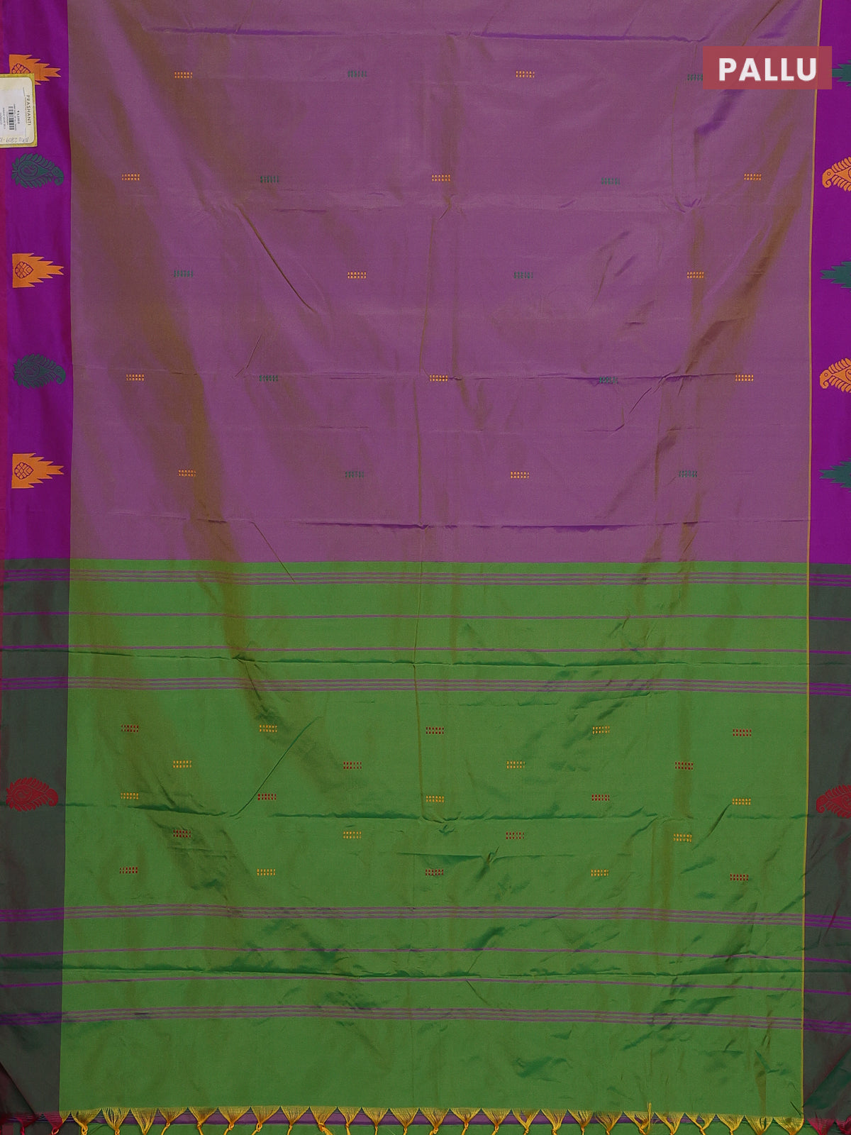 Arani semi silk saree dual shade of mild purple and green with thread woven buttas and thread woven butta border