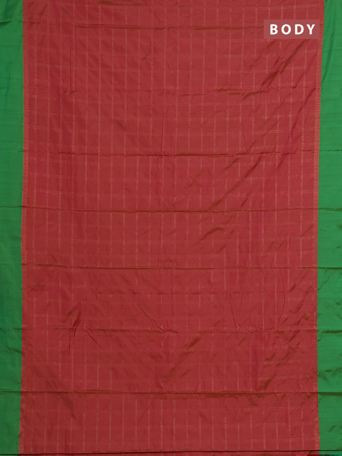 Arani semi silk saree dual shade of pink and green with allover copper zari checked pattern and copper zari woven simple border