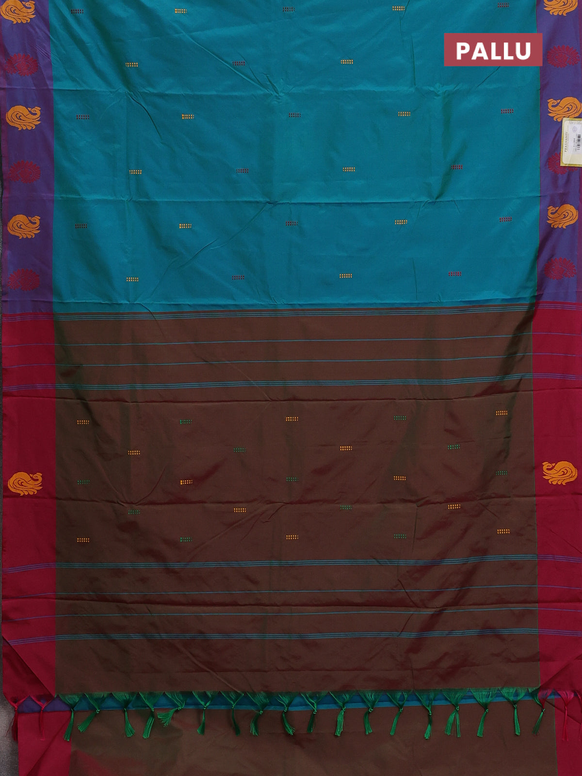 Arani semi silk saree dual shade of teal green and maroon with thread woven buttas and thread woven butta border