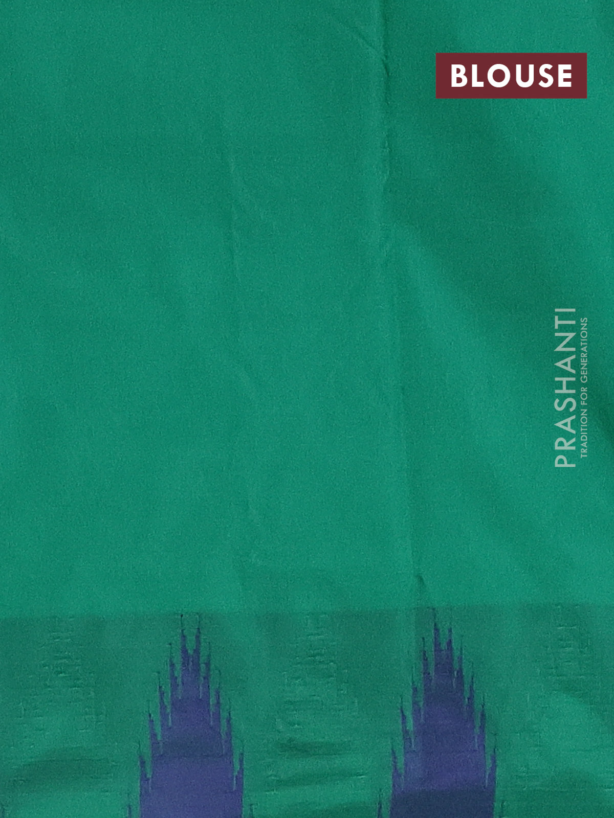 Arani semi silk saree greyish green and green with plain body and temple design border