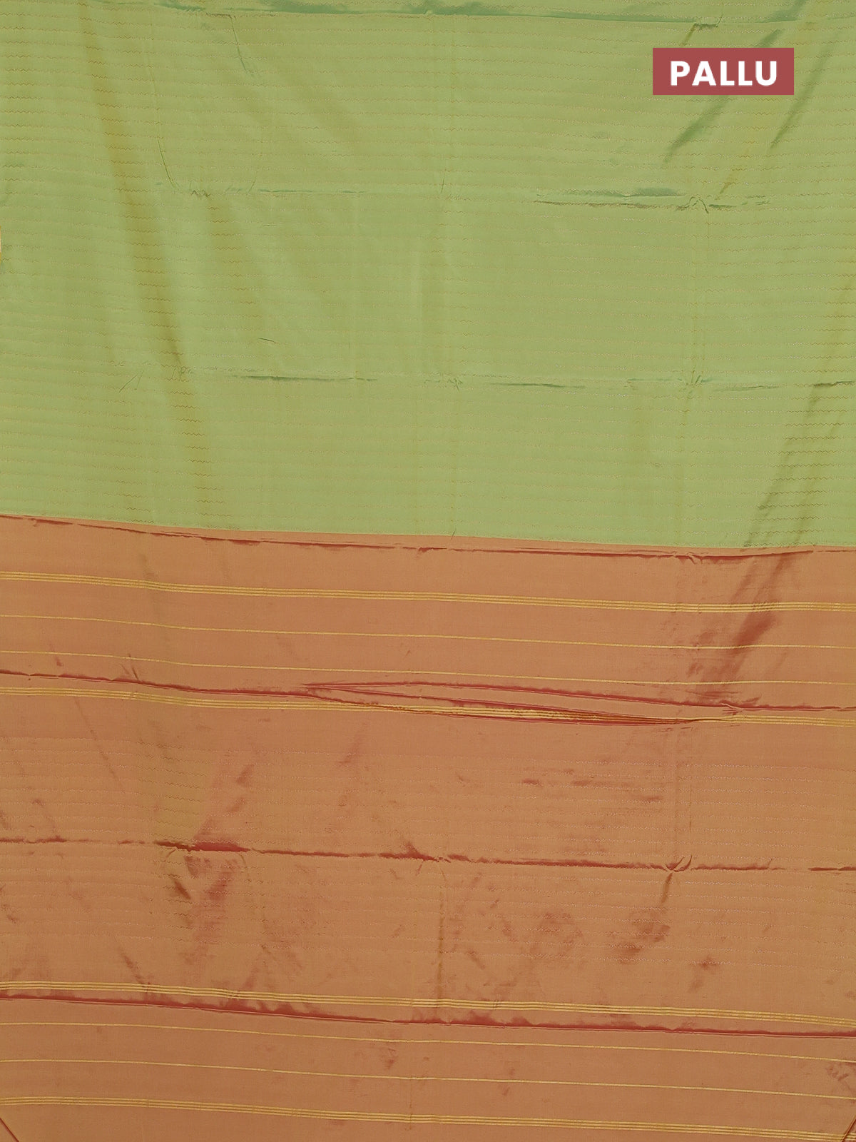 Arani semi silk saree light green with allover zari weaves in borderless style