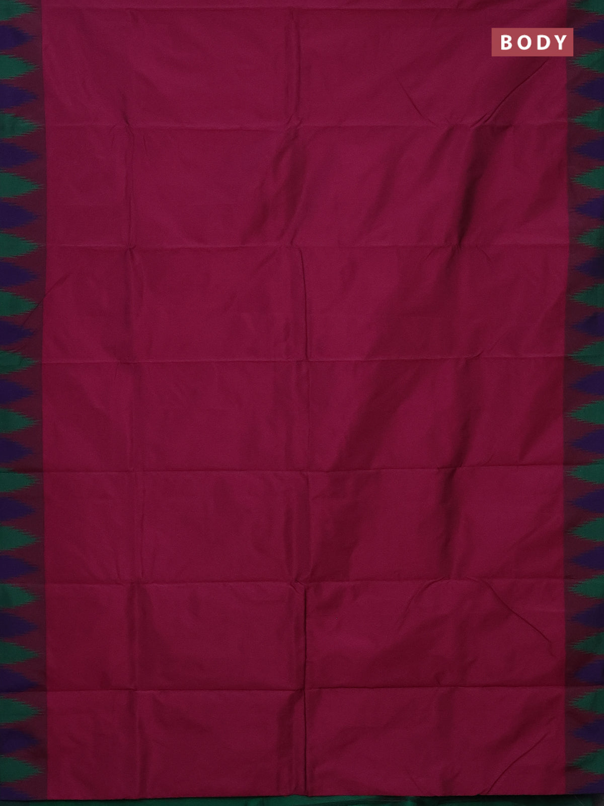 Arani semi silk saree magenta pink and green blue with plain body and temple design border