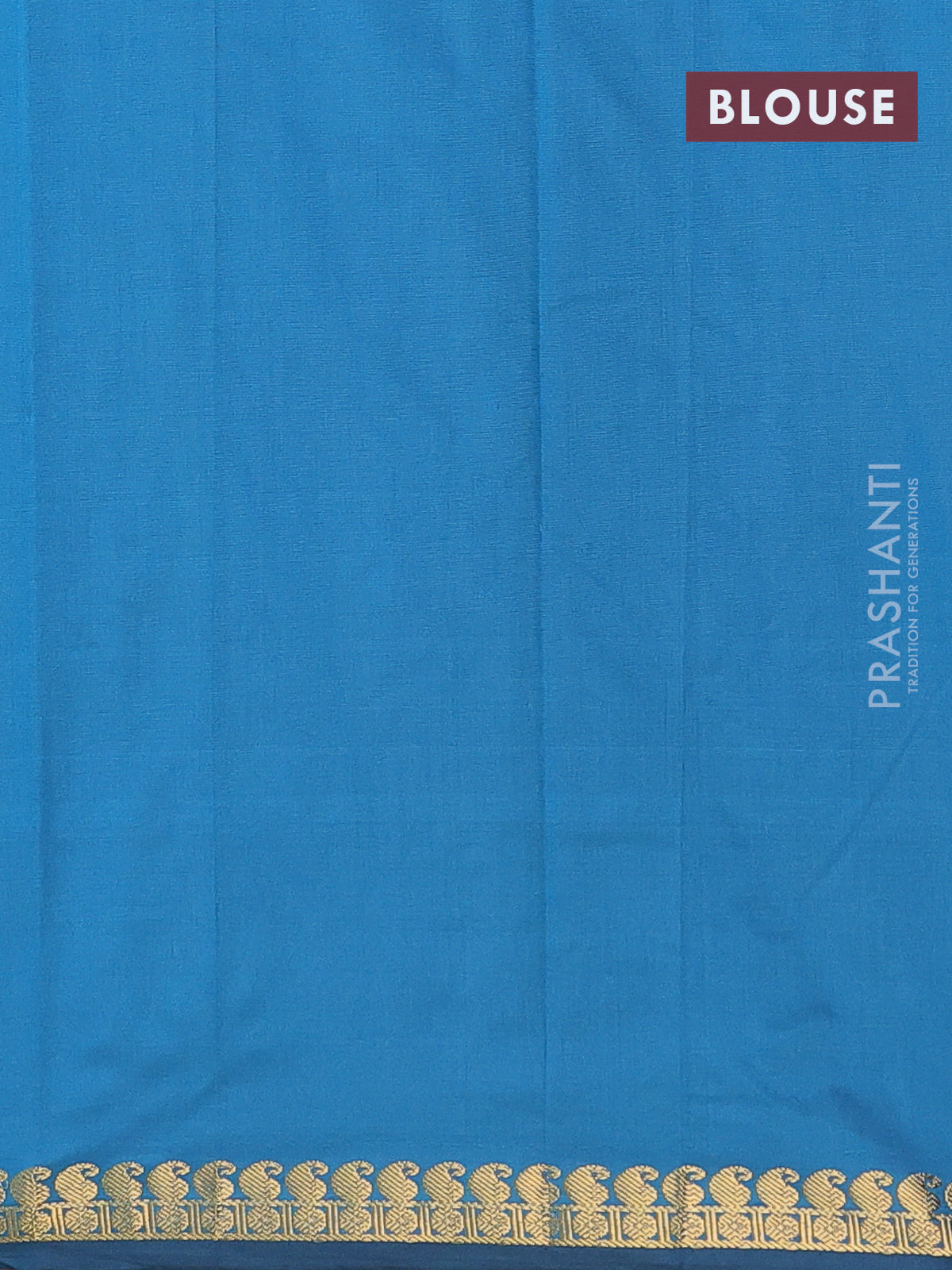 Arani semi silk saree peacock blue with rudhraksha & paisley zari woven buttas and zari woven border
