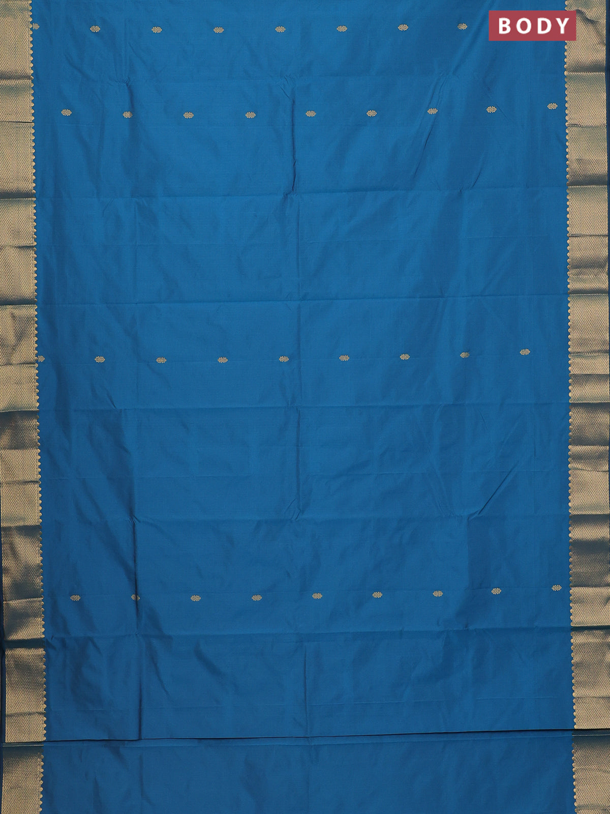 Arani semi silk saree peacock blue with zari woven buttas and zari woven border