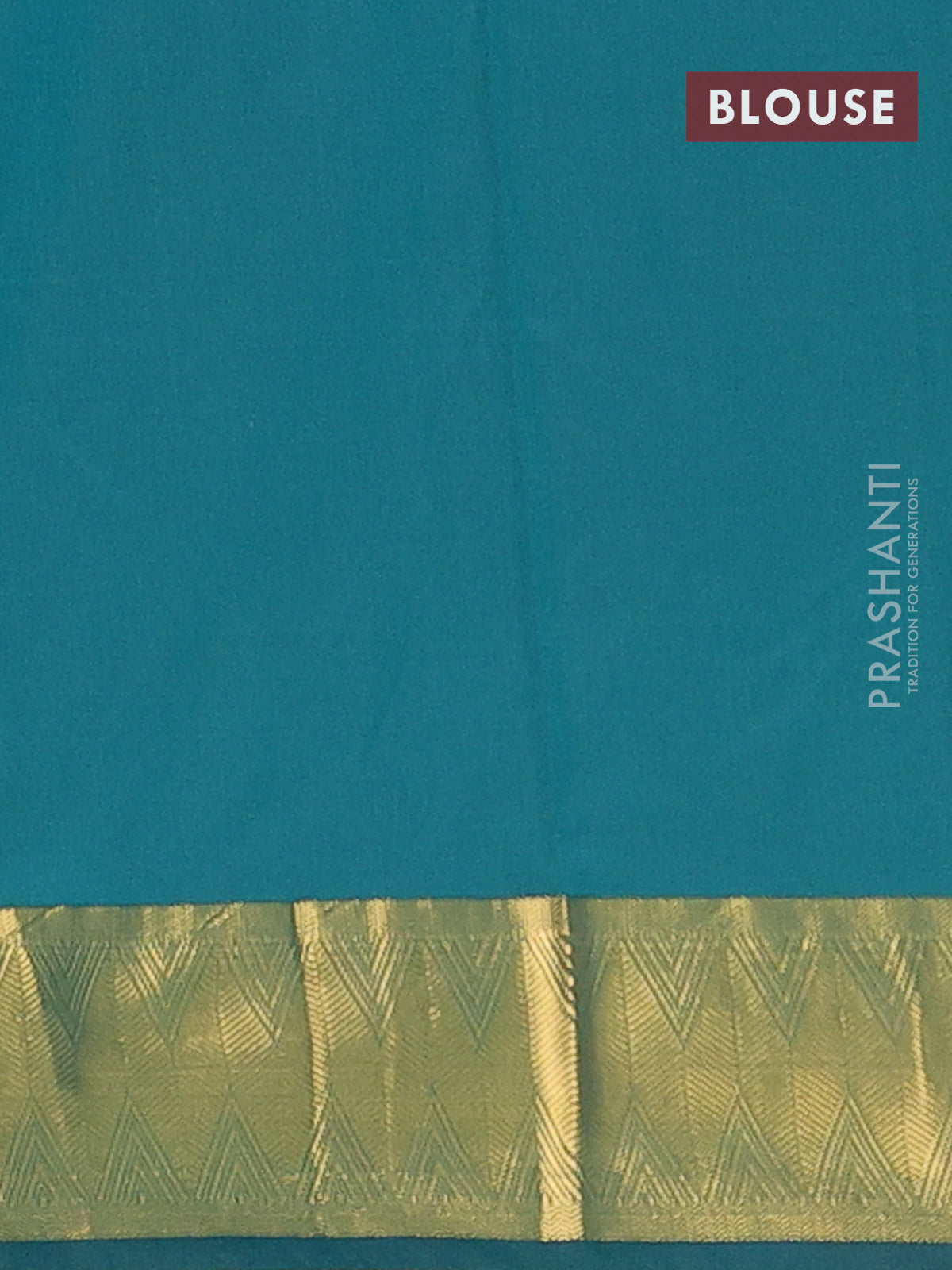 Arani semi silk saree peacock green with zari woven thilak buttas and zari woven border