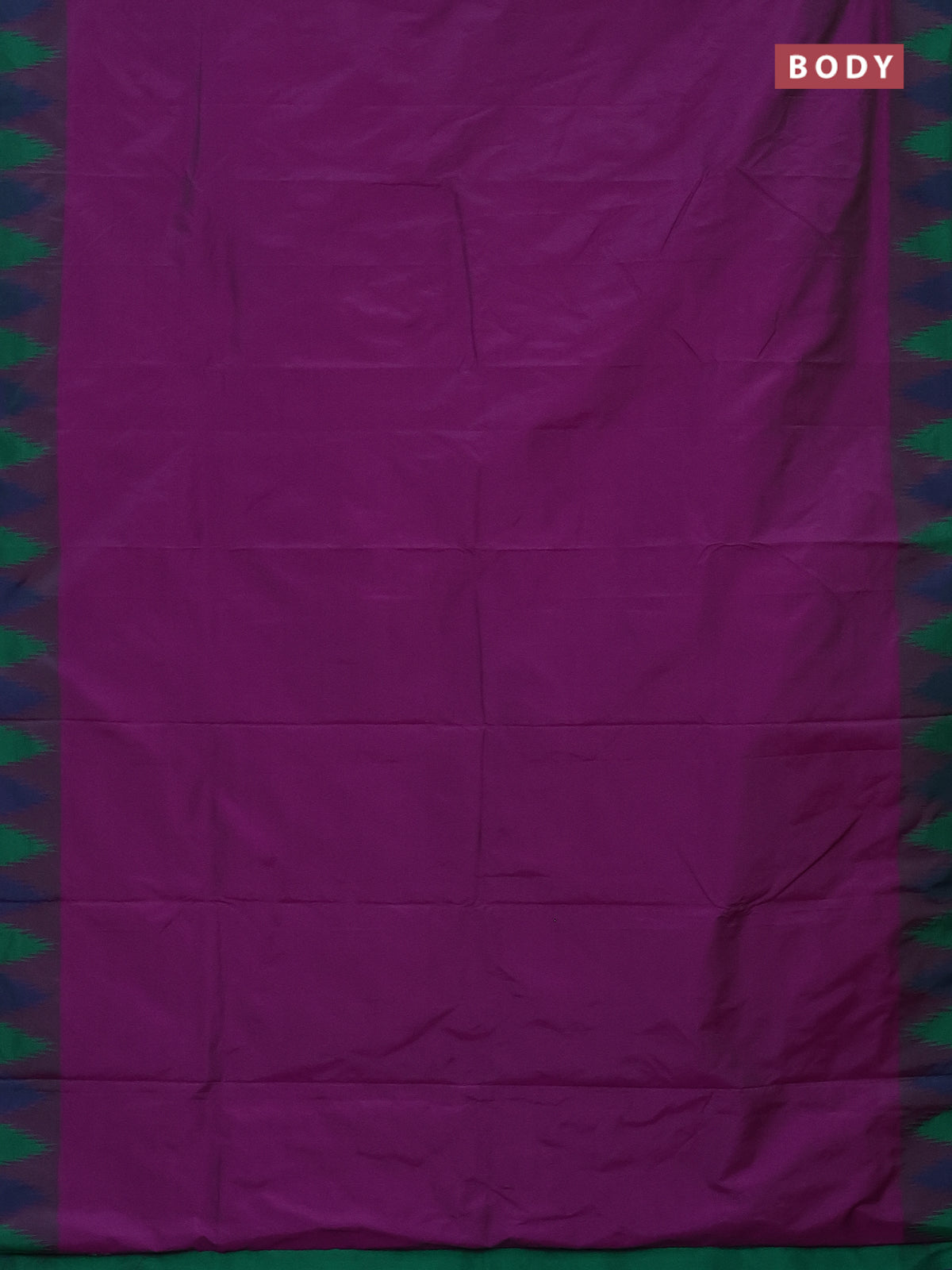 Arani semi silk saree purple and dual shade of green with plain body and temple design border