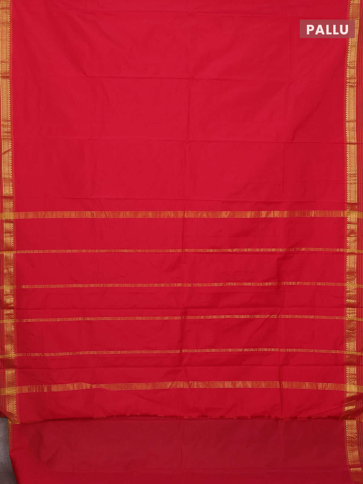 Arani semi silk saree red and dual shade of yellow with plain body and zari woven simple border