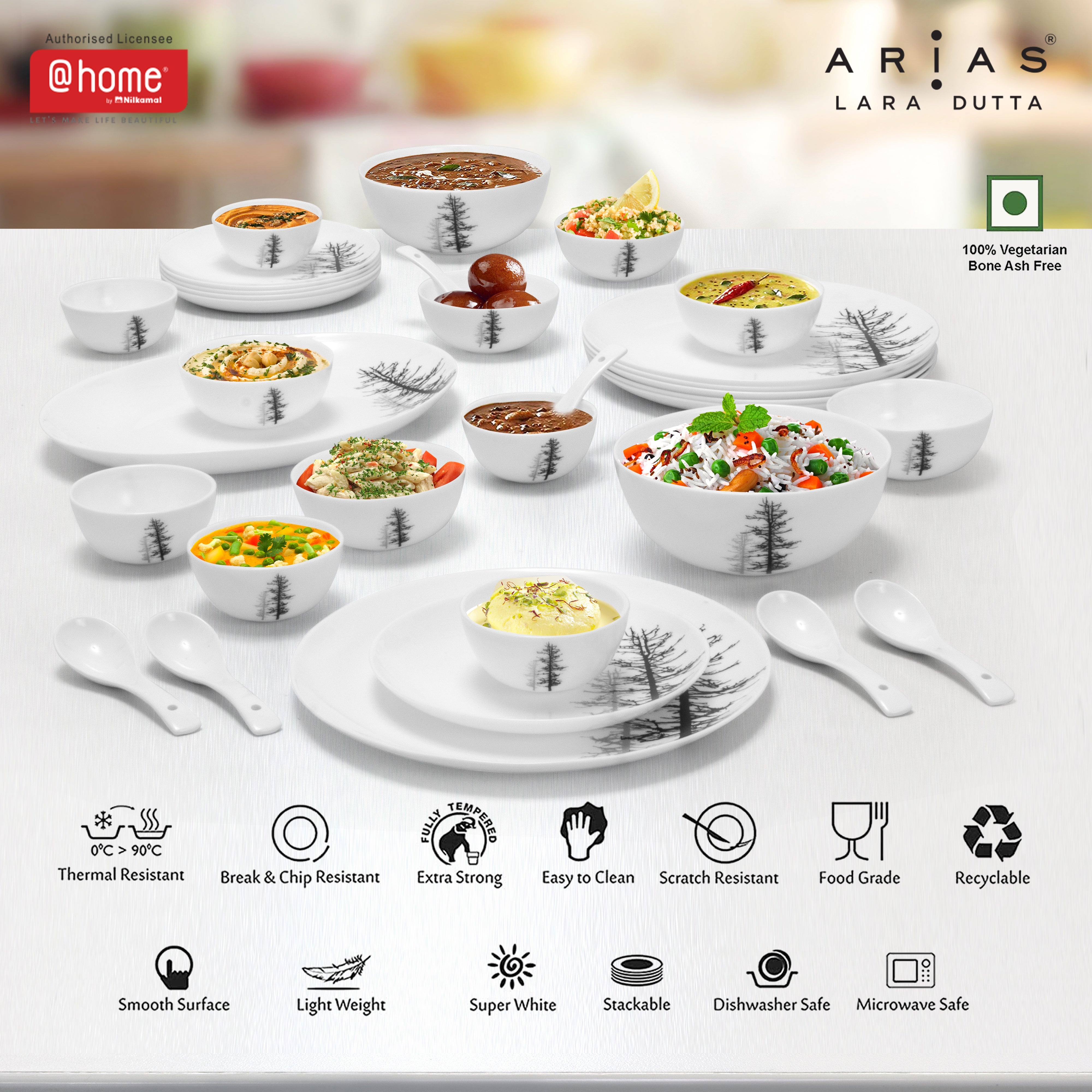 Arias by Lara Dutta Moon Winter Forest Dinner Set - 33 Pieces