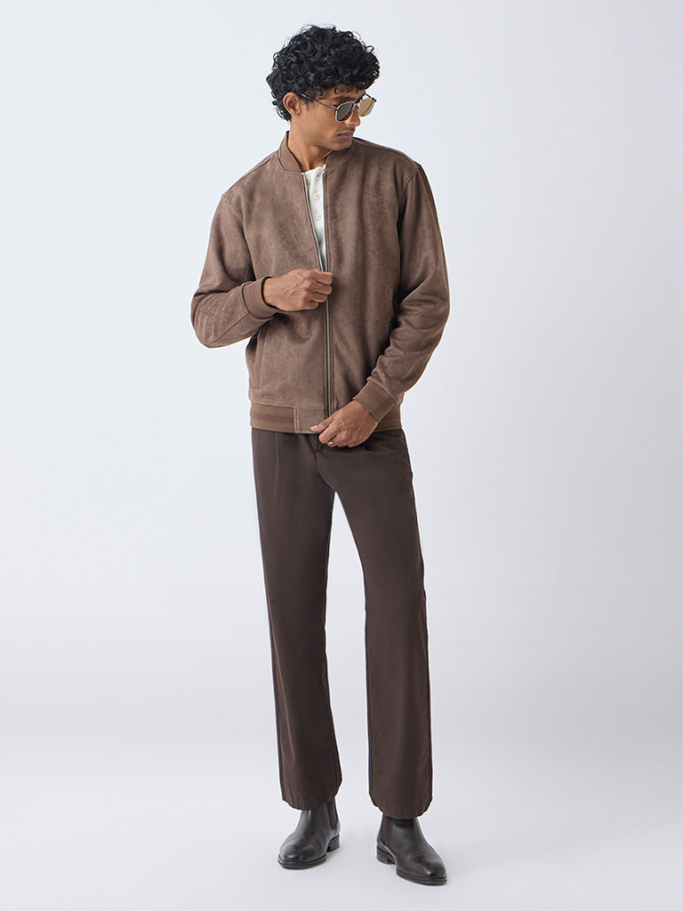 A weekend classic in the making, this brown suede jacket from Ascot pairs a relaxed handle with the richness of luxe suede. The ribbed stand collar adds a subtle sport-inspired edge, while the zipper placket and full sleeves keep the look crisp. Side pockets complete the piece with everyday practicality.