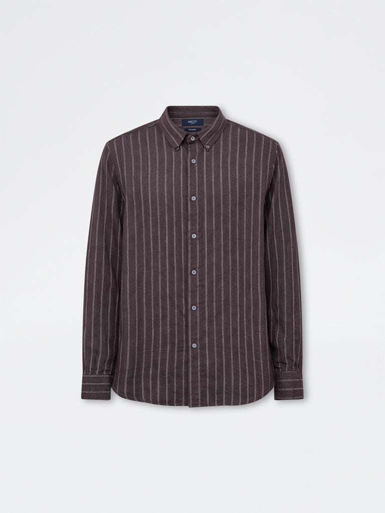 A fresh addition to everyday wardrobes, the dark brown shirt from Ascot features stripe patterns on a relaxed frame. It is designed with a button-down collar and full sleeves for a clean finish. Crafted from a luxurious linen fabric, it offers a lightweight feel suited for warm-weather wear.