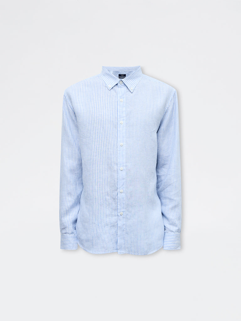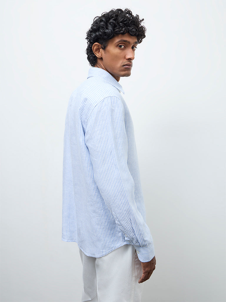Ascot Light Blue Striped Relaxed-Fit Linen Shirt