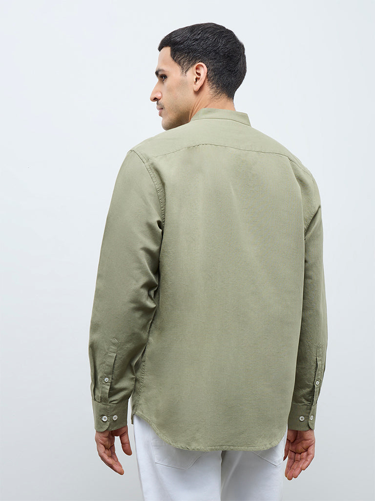 This light olive shirt from Ascot brings a refined ease to your everyday wardrobe. Shaped in a relaxed fit, it features a band neck, a buttoned placket and full sleeves for poised appeal. Crafted from a lightweight fabric, it offers a breathable feel suited for all-day wear.